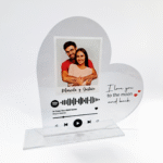 - Esta pieza es elaborada en acrílico en la cual imprimimos directamente la imagen que nos envíes.La canción que deseas dedicar, en ella va el código Spotify que al ser escaneado con el celular desde la propia aplicación se reproduce automáticamente.
